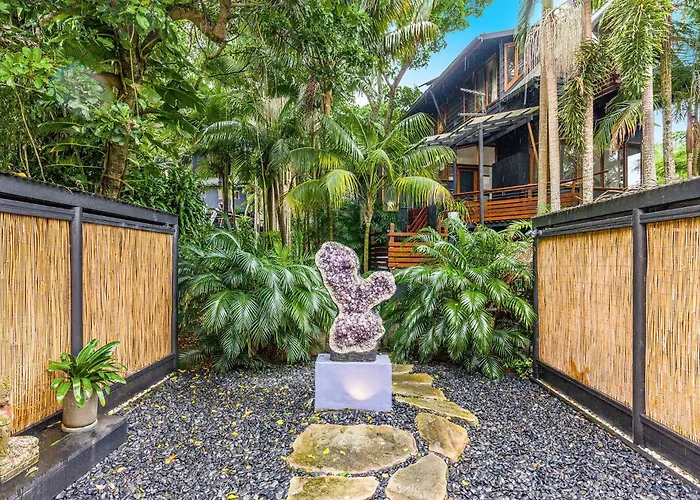 Beliggende 3km fra Arakwal National Park, gæster på 5-stjernet Shambhala @ Byron Hotel Byron Bay kan finde fitness-lektioner, et fitnesscenter og et spabad. Stedet ligger 3 km fra Byron Bay bymidte og 40 km fra Ballina Byron Gateway lufthavn.